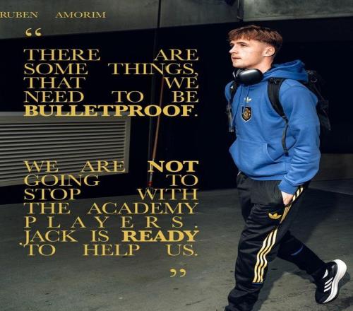 曼联官方发布的照片中,主帅阿莫林表示:“有些事情,我们必须做到无懈可击,我们不会停止培养青训球员——杰克已经准备好为球队提供帮助。”