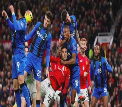 当比赛进行到上半场补时阶段,曼联获得任意球机会,伯恩茅斯球员有明显手球动作,裁判却判罚了角球。这只是本场比赛多次争议判罚中的一幕。