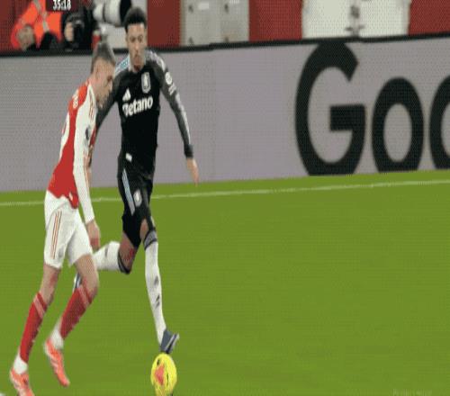 第24分钟,切尔西前场4人组打出精彩配合,埃斯特旺策动进攻,加纳乔助攻,恩佐利用重心的变化晃过防守起脚怒射,帕尔默赶紧闪躲,皮球直挂死角。